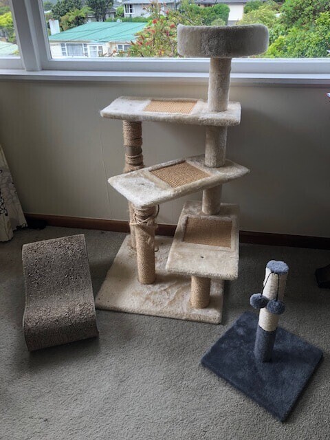 Material - my preference is for sisal rather than carpeted posts – I think sisal lasts longer and cats won’t usually get their claws caught whereas in some carpeted posts, they can get caught in the loops.